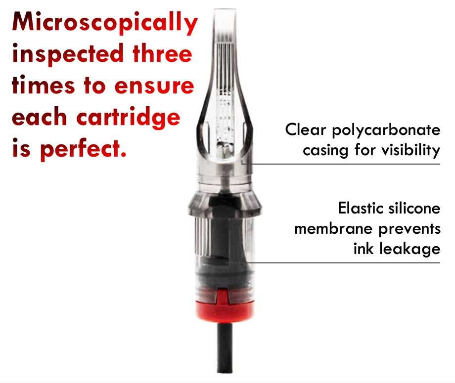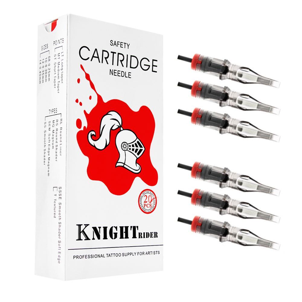 Our Knight Rider Cartridges come in packs of 20 and feature the well-known safety membrane system which prevents any ink, blood or other fluids going up into your machine of choice. They have been designed with a smooth undercarriage causing less trauma to the skin and more comfort for the client. Our Knight rider Liners are a popular choice for many artists using our products.